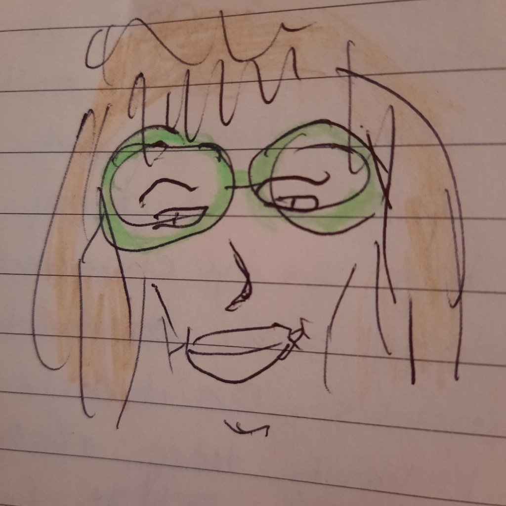 Here’s one of my new ‘works’, a self portrait is how I’ve labelled it, but there’s only two things that make it look anything like me, I think. I’ll keep practicing and see how I go!
