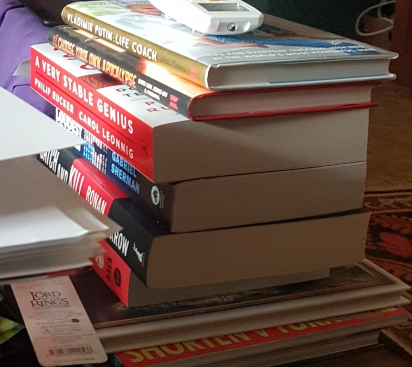 I put that photograph there to show the reality of my world, there are lots of books in it … Books are excellent things to have in your life, whether or not you read each and every one that is there with you. Glancing at them, flicking through them, or merely existing in the same room with them, they are all important things. I certainly hope the book I’m currently working on, the anthology “Plague Invasion – Creative Writing Responses to Covid-19”, becomes a book that many people have in their homes.